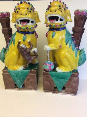 Antique Chinese Porcelain Enamel Pair of Foo Lion Dogs