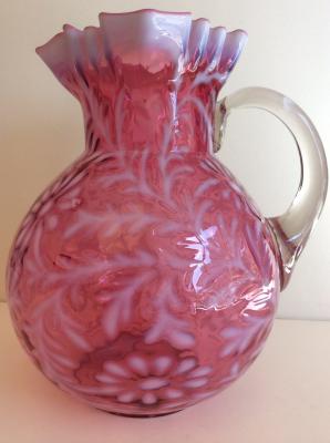 Antique Fenton Cranberry Glass Pitcher, Spanish Lace Pattern,circa 1915