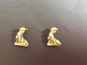 Description: Antique Gold Plated Tie Clip Pin Duet featuring a Gold Miner extracting or washing gold, circa 1920. Rare to find. Goes in Duet.Commemorates Gold Rush Era. Measures: 3/8" x 3/8". In good condition.