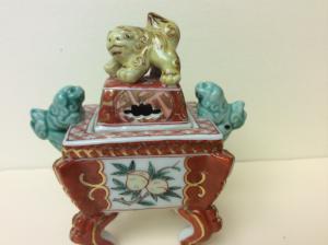 Vintage Japanese Kutani Porcelain Incense Burner with Foo dogs, circa 1970