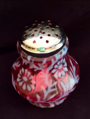 Fenton Cranberry Glass Muffineer Daisy and Fern Pattern