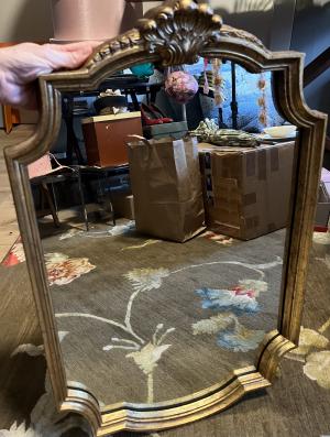 THIS ITEM HAS BEEN MARKED AS SOLD Description: This vintage gold mirror is a stunning piece of decor. Its frame is a work of art itself, with its intricate and ornate design that showcase craftsmanship and attention to detail. The gold finish adds an air of opulence and sophistication to any space, making it not just a reflective surface but also a captivating decorative element that exudes timeless elegance.