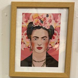 THIS ITEM HAS BEEN MARKED AS SOLD Description: A framed and colorful Frida Kahlo print is the ultimate eye catcher. It captures the iconic Mexican artist's essence through a burst of vivid colors, showcasing her unique style and personality. This bright and bold print, enclosed in a light colored wood frame, is a fabulous addition to any space.