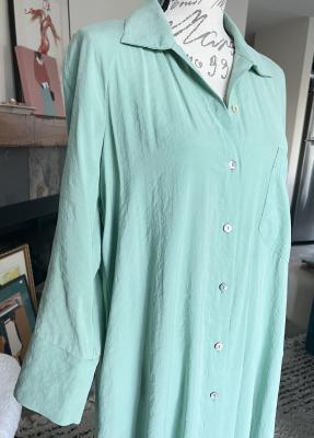 Description: Elevate your style with this Zara mint green shirt dress. Its flowing design combines comfort and sophistication, making it a versatile addition to your wardrobe. Its simplicity leaves room for creative touches, like adding a beautiful statement necklace, earrings, or bracelets. Look put together with ease and grace. Shirt dresses are right up there with jumpsuits for me - the outfit planning is at a minimum!
