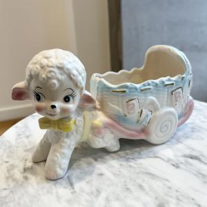 Description: Sweet-as-can-be vintage Baby Velco Lamb Nursery Planter! Velco was a ceramics company based in Japan following WWII which lasted until the early 1960s era. They were known mainly made for their adorable animal forms.