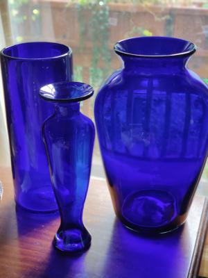 Description: Several blown glass vases available. Cobalt blue, heights 12" to 14". Excellent condition. Individually priced