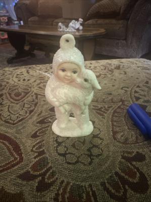 Description: Ceramic snow baby 1930s holding a lamb about 4 inches