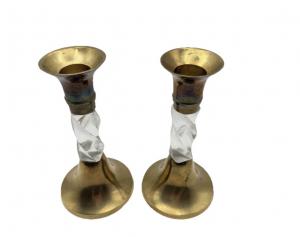 Pair of brass and lucite candlestick holders