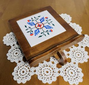 Wood wheel barrel trivet