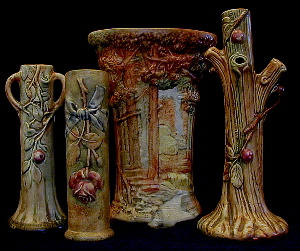 Description: Beautiful Weller Vases in the Forest, Flemish and Woodcraft patterns.