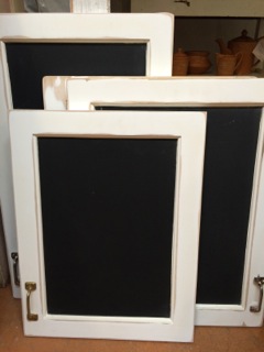 Dealer #60 has chalkboards of salvaged distressed doors with brass handles ready to hang in any room.