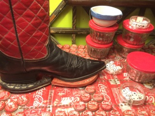 Dealer #16 fills the top of a metal cart on wheels with old film canisters. We're on a roll checking out the mix of items you will find.