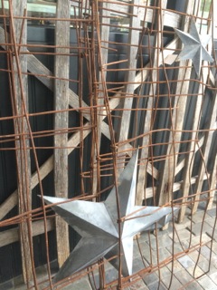 Old wire fencing catches stars on the sidewalk outside of Stars Too where everything will be on sale!