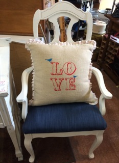 It's all about LOVE; Dealer #42 places a pillow on an upholstered chair and celebrates the holiday in an understated way! Open through Memorial Day 11-6, join us for your last minute needs for the weekend! Shop Smart. Shop Stars.