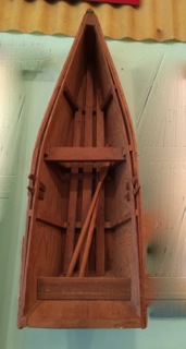 Stars Too has a wooden rowboat hanging on the wall; a clever piece of art or a great centerpiece on the picnic table while camping.