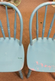 Dealer #20 shows a pair of weathered blue chairs for the little ones! Hang on the wall when not needed and use as shelves!