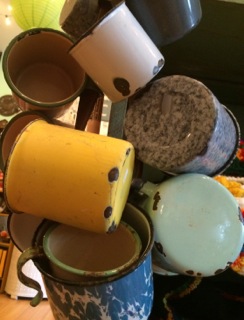 Stars Too hangs a dozen enamel mugs off a string when there's no more space in the cupboard.
