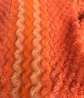 A vivid orange chenille bedspread at Stars Too is sure to brighten the day.