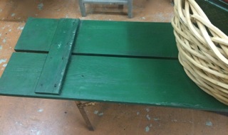 Dealer #99 has a double plank bench on a metal base for inside or out.