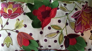 Dealer #49 has felt flowers blooming across this rectangular pillow. Perfect for a color burst on the sofa.