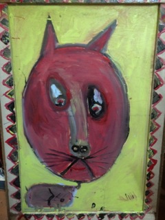 Cats on canvas and wood are on the prowl in large numbers. Available from Dealer #1.