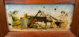 Hand painted cherubs make heavenly music across the base of an antique clock at Stars Too.