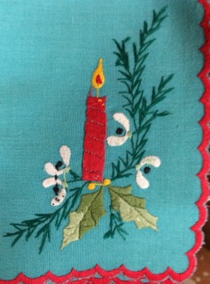 Vintage napkins are embellished with a single candle giving hope for all things good for 2016. Available from Dealer #54.