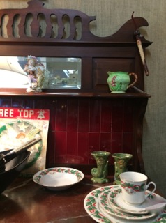 Antique sideboard offers a great display surface for vintage plates, vases, and more for the Holidays. Available from Dealer #20.