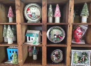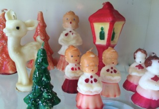 A nice selection of vintage 1950's candles can be found in the case of Dealer #116.