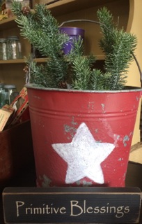 Dealer #46 fills a bucket with greens and places simple signage in front for a great welcome to all who knock on your door!