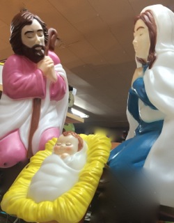 Dealer #44 has the most cheerful Santas with round full bellies and the Mrs. too!