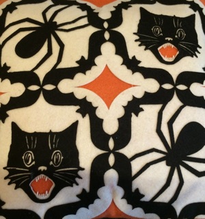 A cat and spider pillow is yours for the chair or sofa from Stars Too.