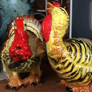 Another colorful pair of ceramic turkeys from Dealer #89!