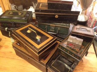 Stars Too shows off a collection of old cash boxes in their back room. Wonderful for holding mementos!