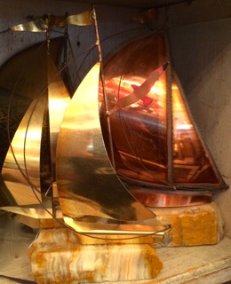 A fleet of metal ships with full sails take us to far away places. Available at Stars Too.