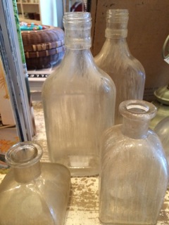 Old weathered glass jars with narrow openings are perfect for the windowsill bouquet of single stems; found at Stars Too.