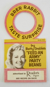 That was always how our grandfather called, Betty Grable. She got him through the war and we are indebted to her for that. So when we saw this bit of advertising with her name and face on it, we had to check it out. Betty is selling Brier Rabbit Molasses and Dealer 25 has it priced at only $4. A pretty cheap way to remember grandpa.