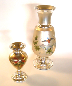 Dealer #11 is offering these two piece of mercury glass in their showcase. You just don't see these kinds of pieces very often. They have the 13 1/2 inch piece at $475.00 and the 8 inch piece at $175.00.