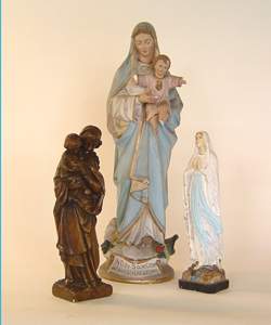 Religious items have become very collectible. This trio of madonna's are an instant collection. Dealer #25 has priced these madonnas from $39.95 to $59.95.