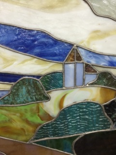 Is it a castle or lighthouse?? You decide. Stained glass image available from Dealer #58. Several others compositions available.