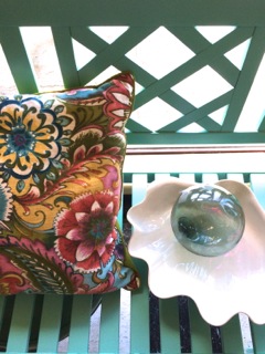 The porch will be dressed to the nines with an assortment of garden decor from Dealer #57. Benches, pillows and more!