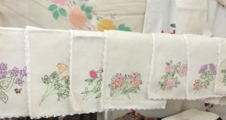 Linens in soft pastels hang on the line ready for the taking. Available from Dealer #100.