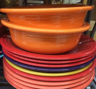 There's certainly full sets of traditional service; but create your own color scheme and stack them high as you serve up family and friends at gatherings. Dealer #118 has a wealth of Fiesta.
