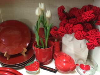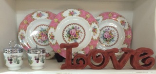 Dealer #32 features flowers, red hearts, and plates nesting together.