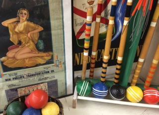 Dealer #37 shows off a vintage croquet set alongside a 1939 wall calendar.