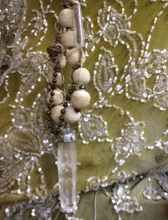 Dealer #36 has teamed a beaded vintage top with a crystal necklace for texture and monotone colors.