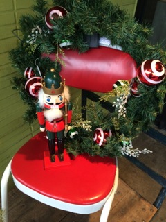 A Holiday Red chair and wreath welcomes shoppers at Stars and Splendid. Available from Dealer #12.