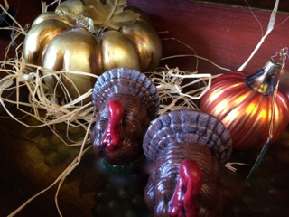Dealer #69 has pumpkins in metallic tones teamed with vintage candles. A clever contrast in centerpiece options.