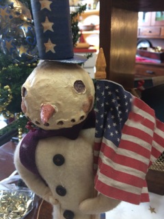 There's fresh white powder on the mountain as it rains in the city!! Time to build the snowmen and women and play in the fresh air!! Let's Shop gets a jump on the impending Holiday season as Stars celebrates and decorates. Open every day from 11:00-6:00 our dealers are bringing in new goods daily! We will be closed on Thanksgiving Day. Proud flag waving snowman available from Dealer #69.