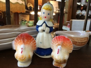 Thanksgiving turkeys are popping up everywhere! A small vignette of collectible candles from Dealer #69.
